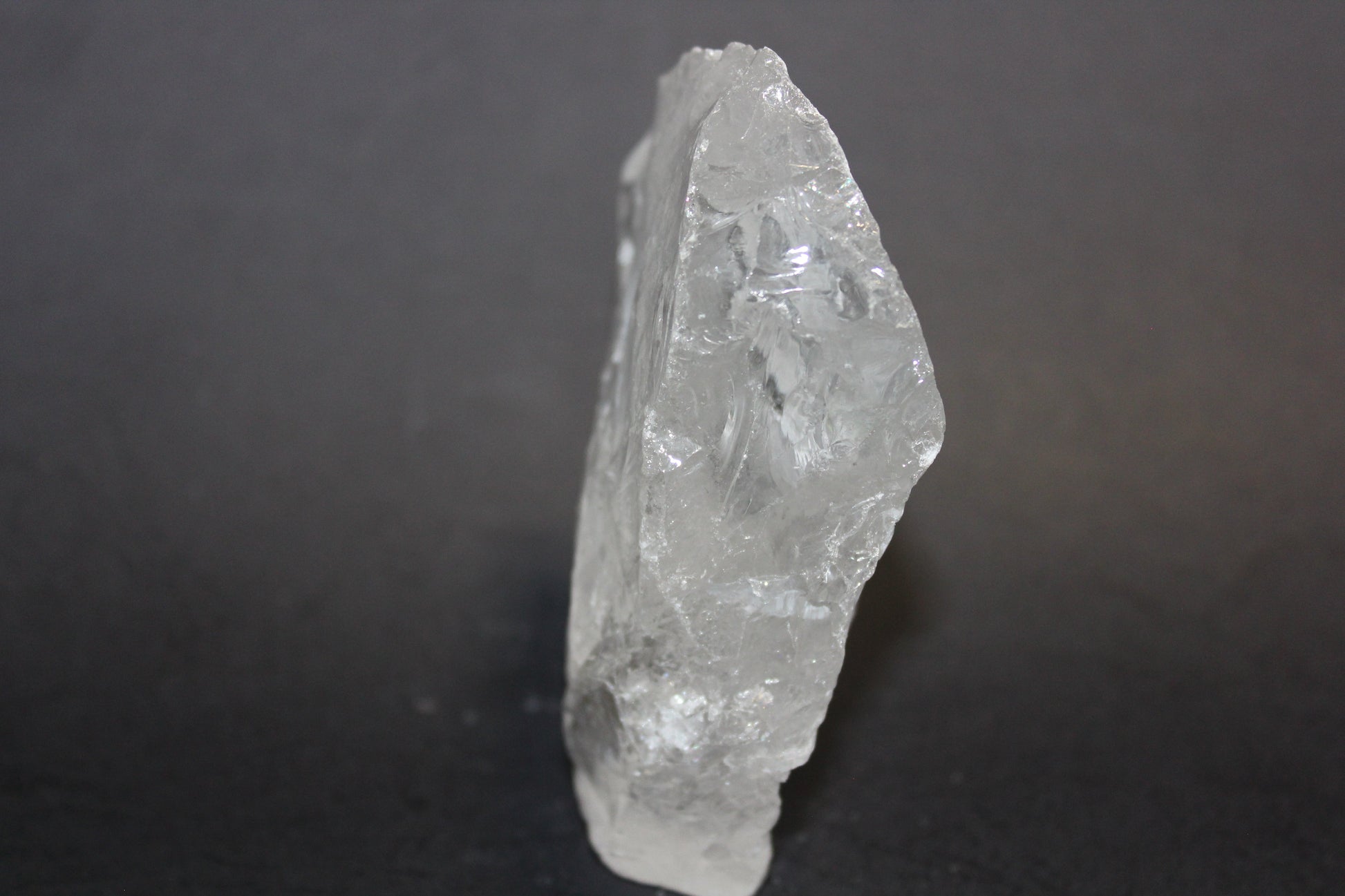Clear Quartz. Approx. 100mm (h) x 65mm (w) x 30mm (d) and 261gms. This beautiful piece has a 'sawn' base making a magnificent crystal stand.