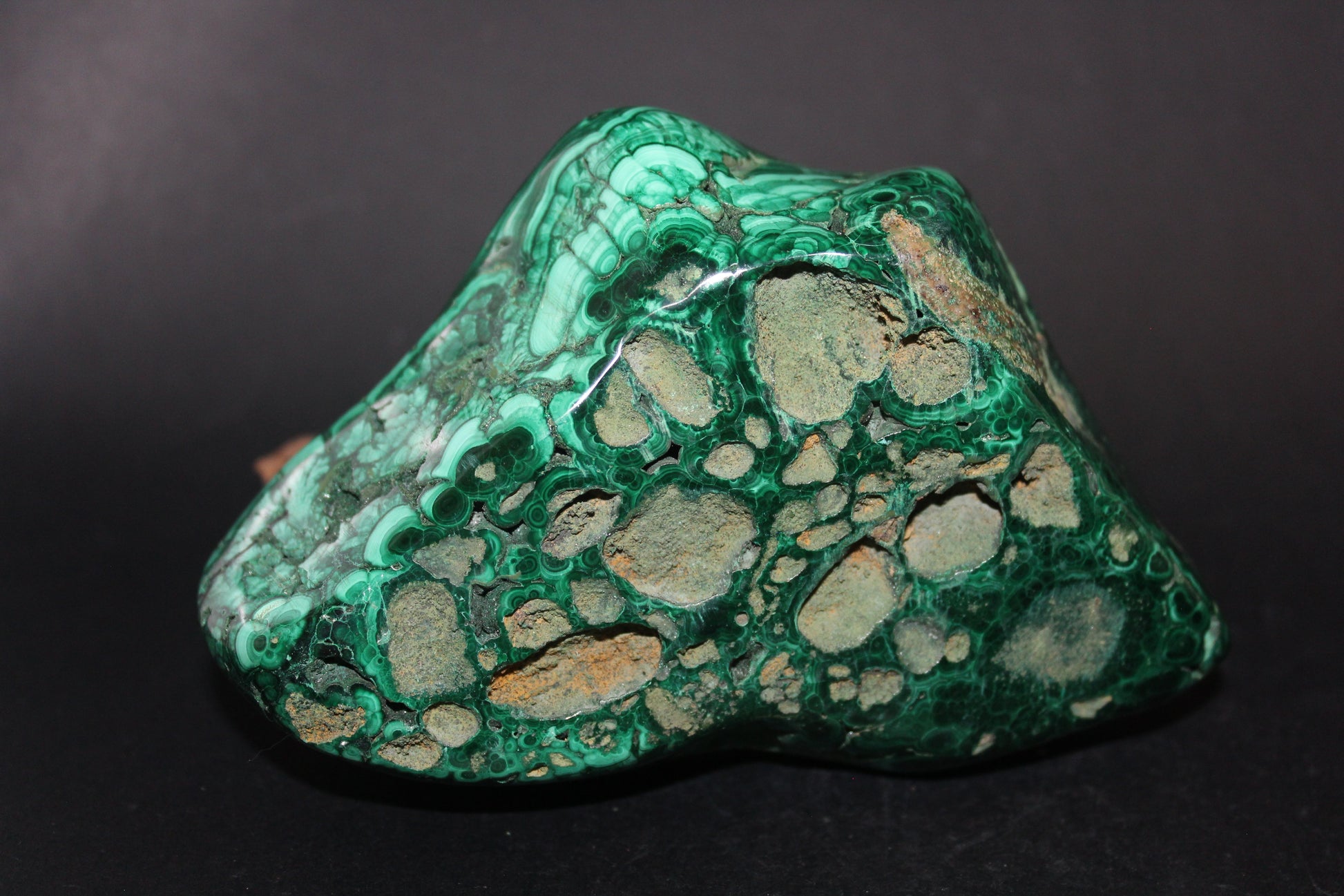 Healing Malachite. Approx. 35mm (h) x 140mm (w) x 90mm (d) and 705gms.