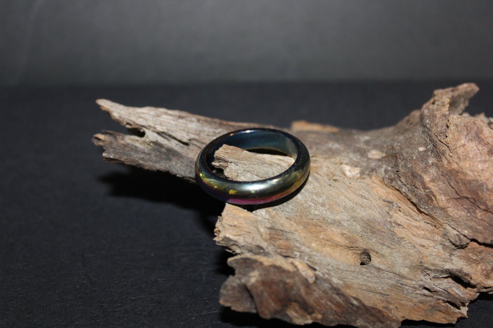 This beautiful crystal ring is carved from Rainbow Hematite.