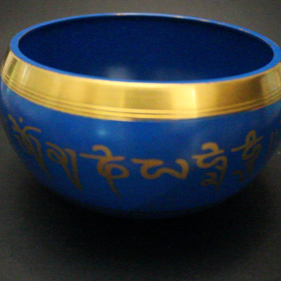 This Singing Bowl is 12cm - diameter x 7cm - high and Dark Blue in colour - wooden dorge/striker included.