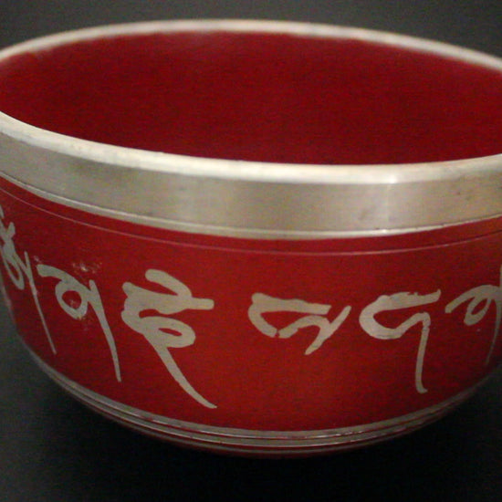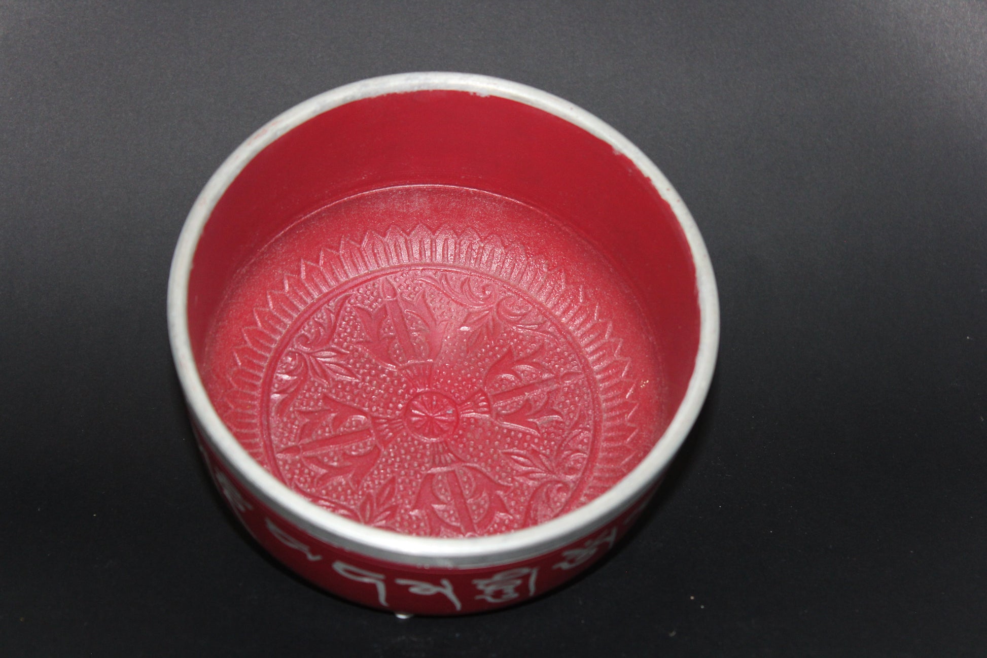 This Singing Bowl is 16cm - diameter x 8cm - high and Red in colour - wooden dorge/striker included.