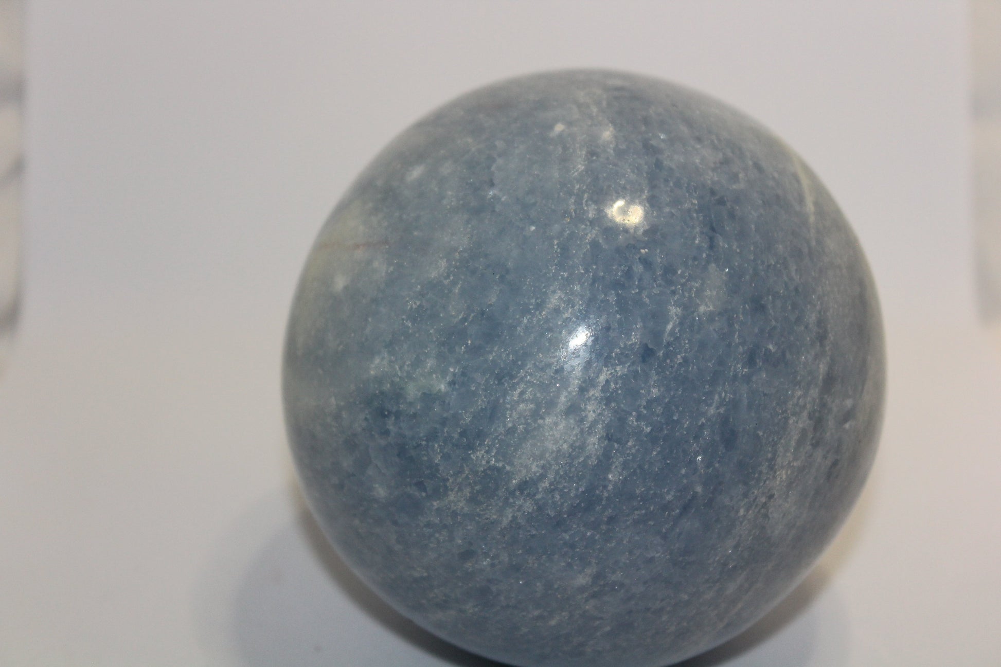 This beautiful Blue Calcite sphere is 105mm (approx. diameter) and will bring recouperation and relaxation to your environment.