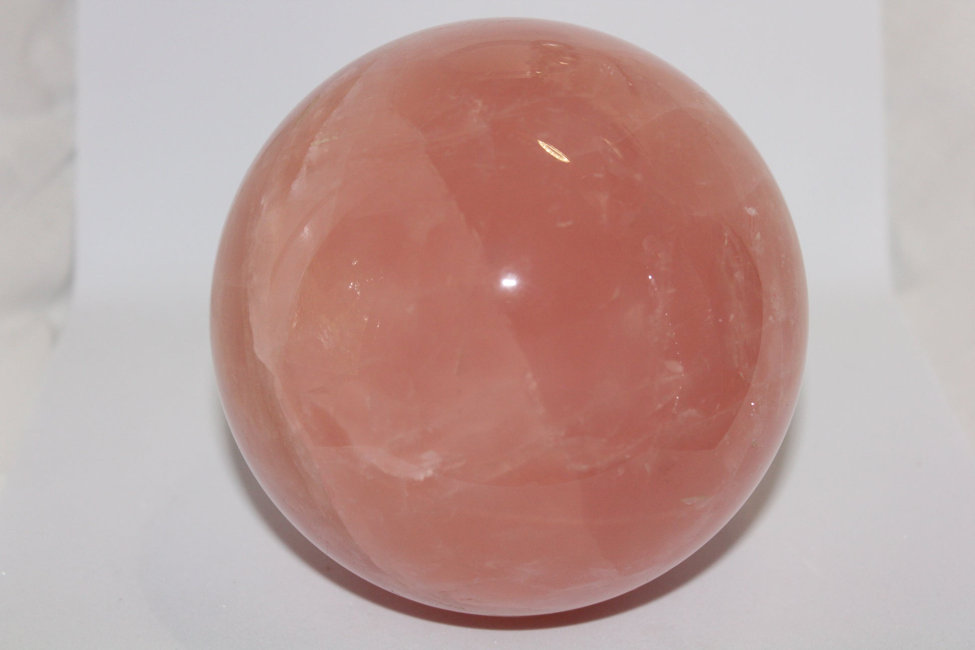 This beautiful Rose Quartz sphere is 110mm (approx. diameter) and will bring gentle love and compassion to your environment.