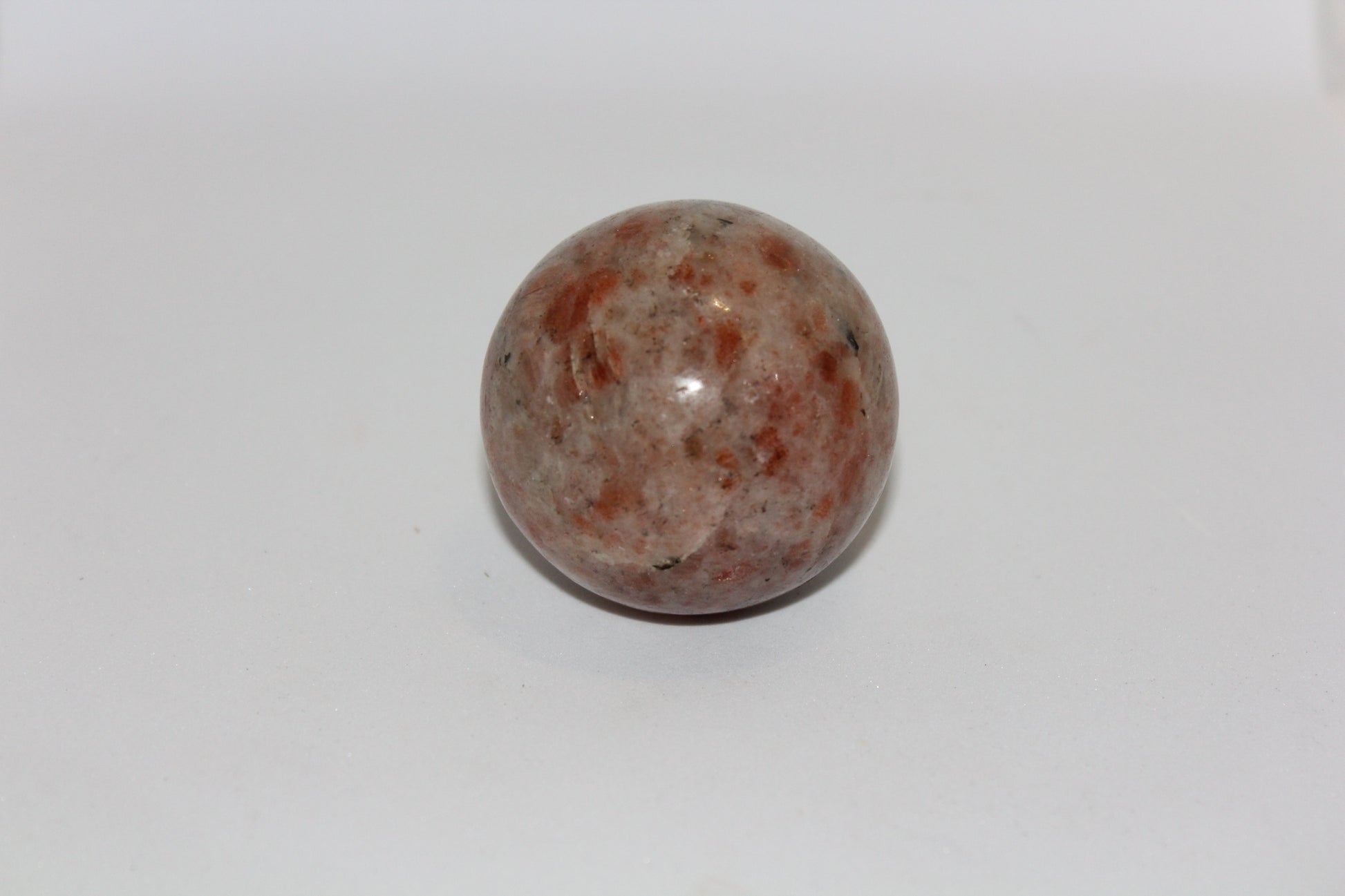 This beautiful Sunstone sphere is 50mm (approx. diameter) and will bring the Sun God and abundance to your environment.